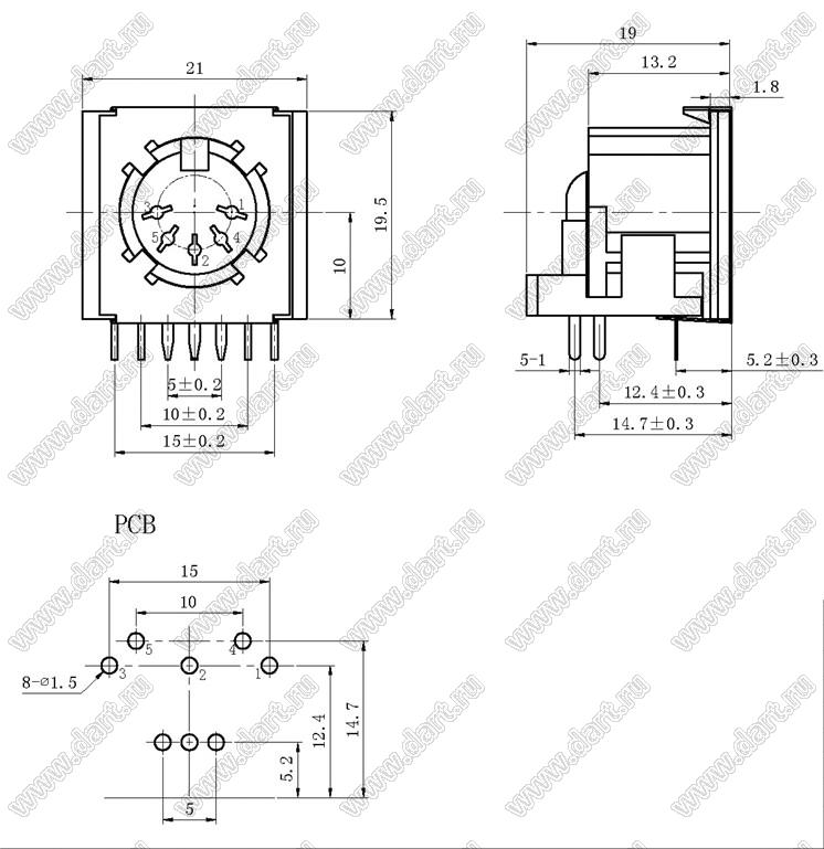 Каталог > Электронные компоненты, радиодетали > Разъёмы (соединители, переходники) > Разъемы DIN круглые > Розетки DIN на плату > DS-5-03A-05-02