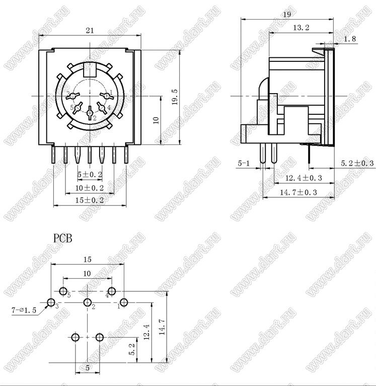 Каталог > Электронные компоненты, радиодетали > Разъёмы (соединители, переходники) > Разъемы DIN круглые > Розетки DIN на плату > DS-5-03A-05-1