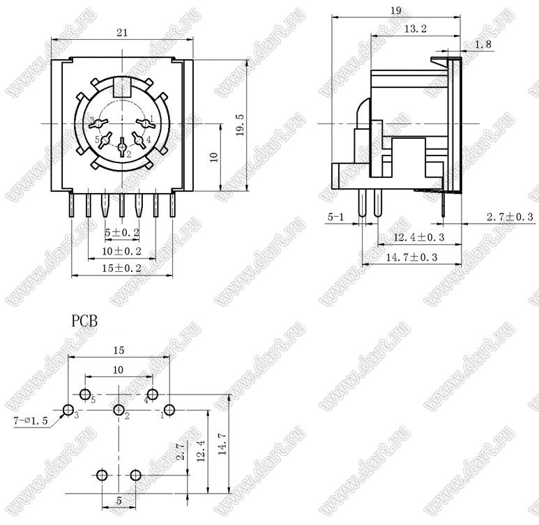 Каталог > Электронные компоненты, радиодетали > Разъёмы (соединители, переходники) > Разъемы DIN круглые > Розетки DIN на плату > DS-5-03A-05-2
