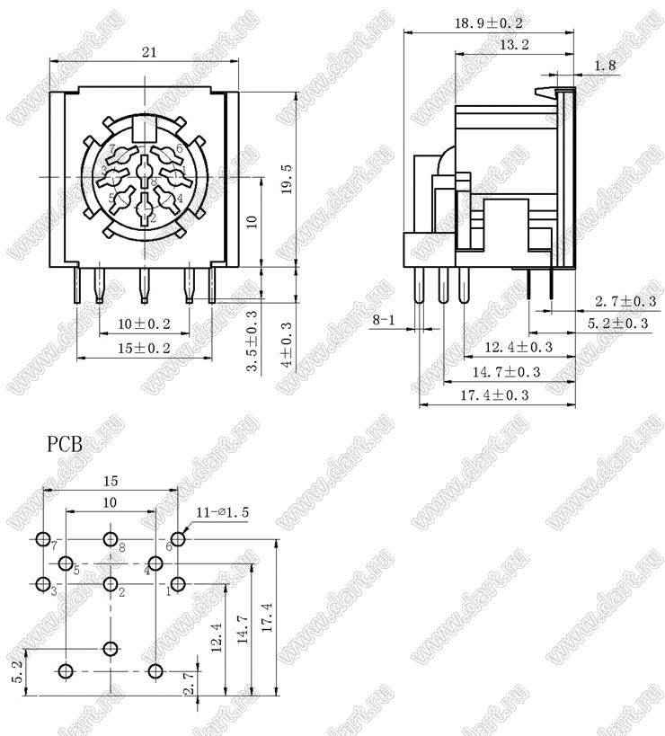 Каталог > Электронные компоненты, радиодетали > Разъёмы (соединители, переходники) > Разъемы DIN круглые > Розетки DIN на плату > DS-8-03-05