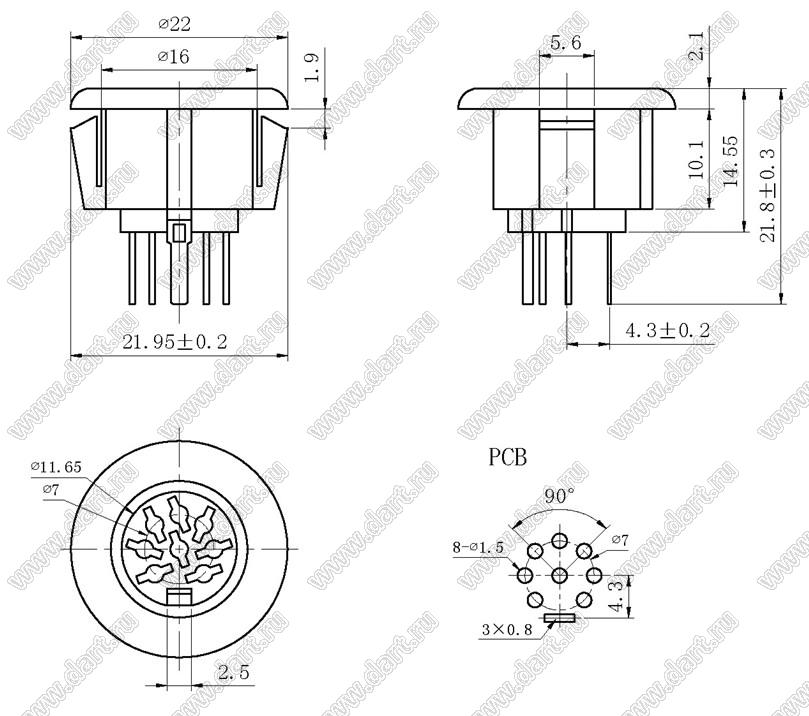Каталог > Электронные компоненты, радиодетали > Разъёмы (соединители, переходники) > Разъемы DIN круглые > Розетки DIN на плату > DS-8-07A