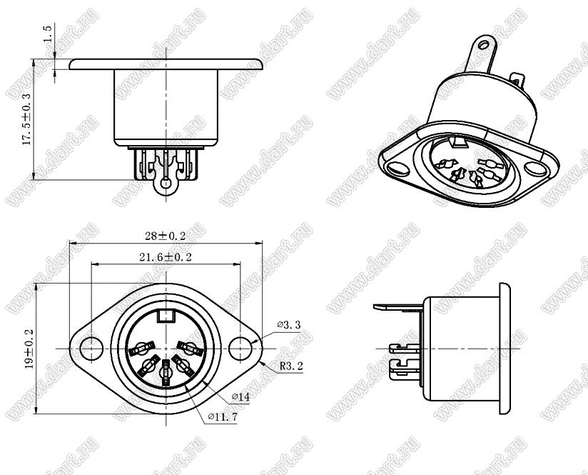 Каталог > Электронные компоненты, радиодетали > Разъёмы (соединители, переходники) > Разъемы DIN круглые > DSCT-серия DIN гнезд > DSCT-5-19M