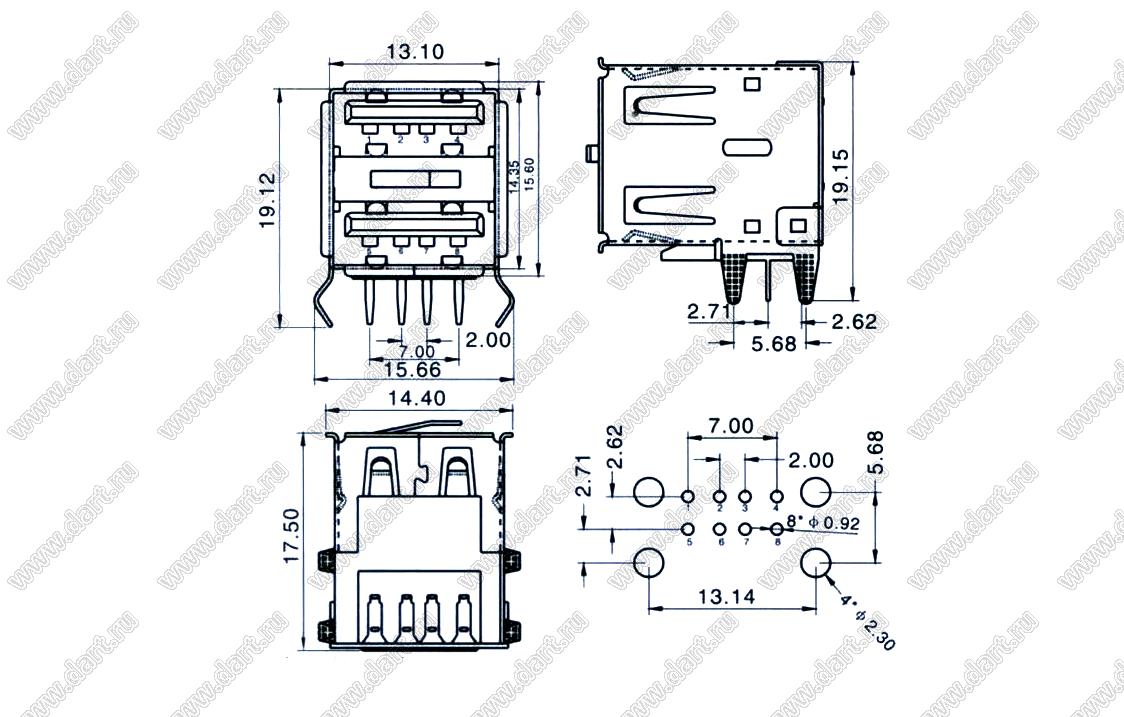 Каталог > Электронные компоненты, радиодетали > Разъёмы (соединители, переходники) > Разъемы USB > Разъемы USB-A > Разъемы USB 2.0 тип A > US01-217