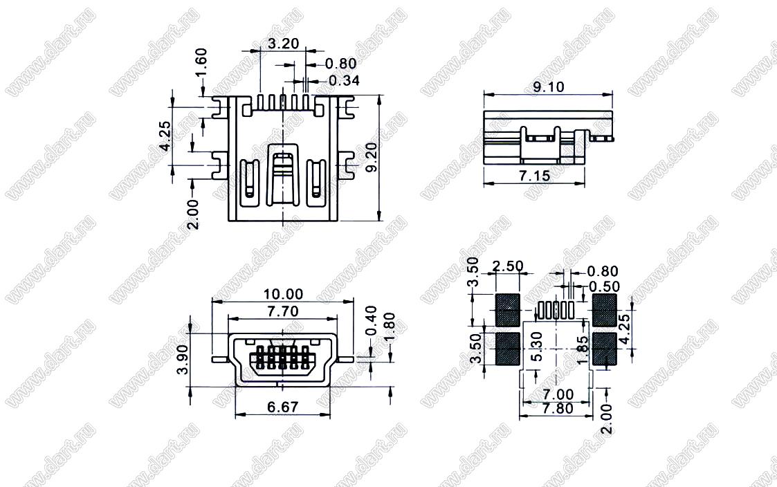 Каталог > Электронные компоненты, радиодетали > Разъёмы (соединители, переходники) > Разъемы USB > Разъемы мини USB > U148-0155-H6161 (US01-312)