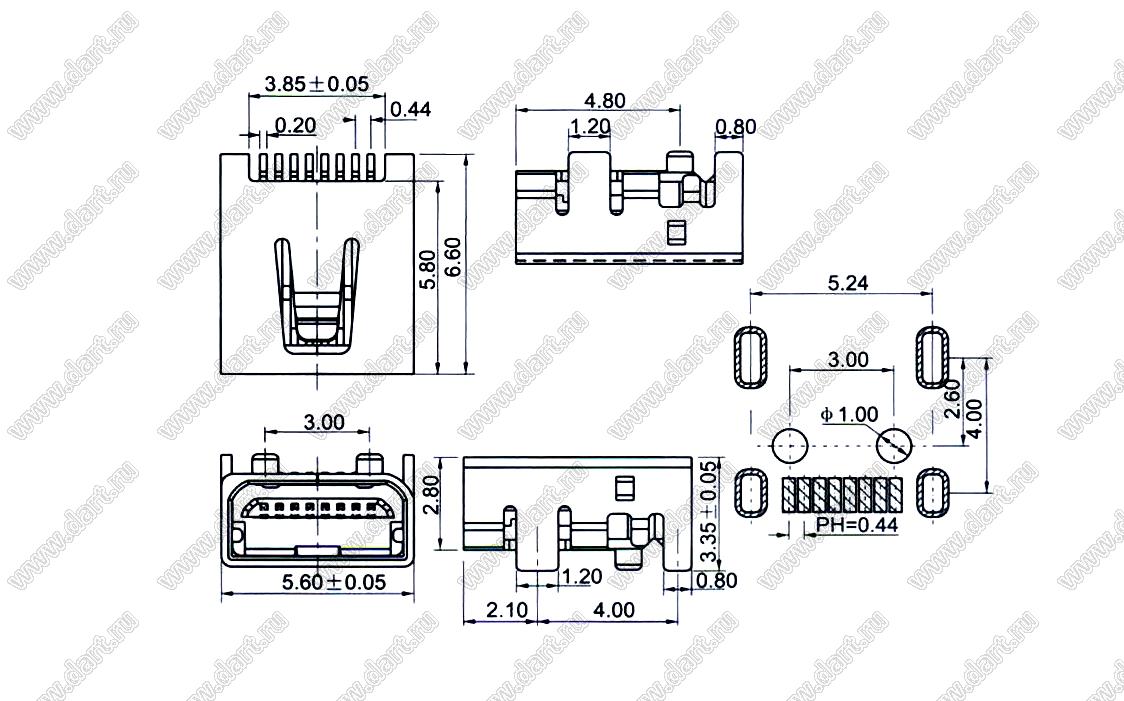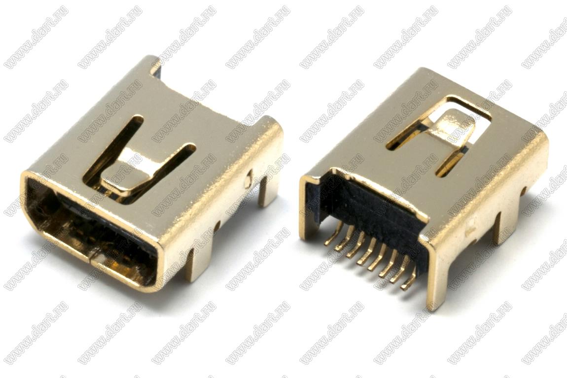 US10-060 розетка мини USB2.0 для поверхностного (SMD) монтажа, 8 конт.