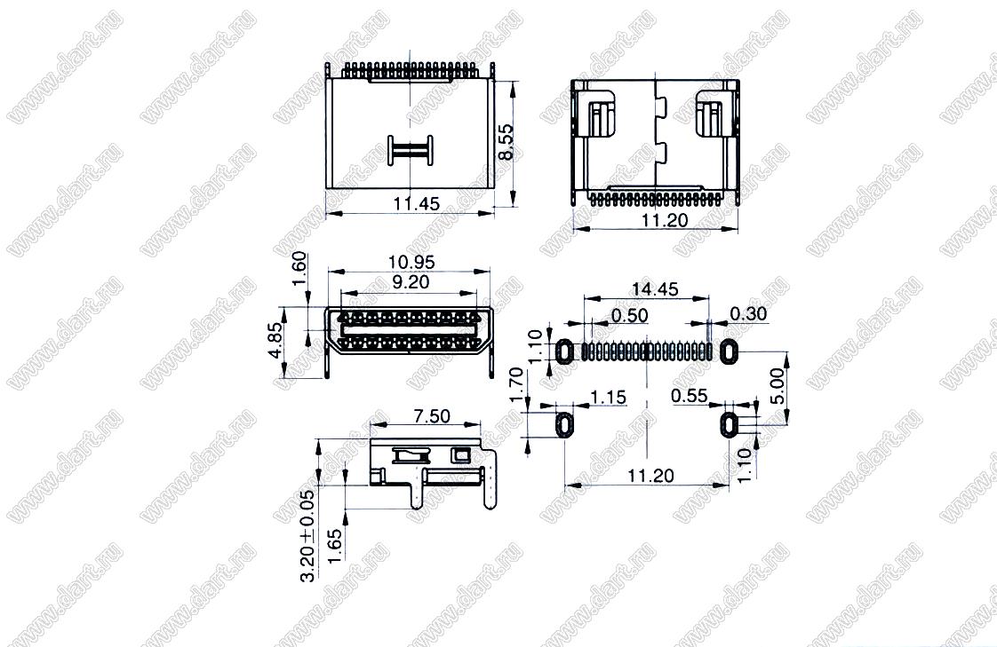 US10-050 розетка мини USB2.0 для поверхностного (SMD) монтажа, 18 конт.