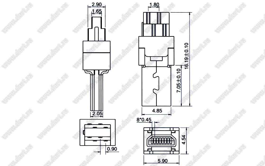 Вилка мини USB2.0 для выводного монтажа, 8 конт.