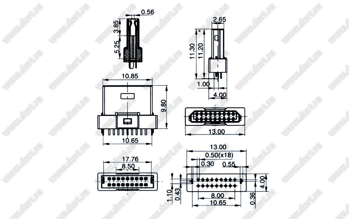 US10-053 вилка мини USB2.0 для выводного монтажа, 18 конт.