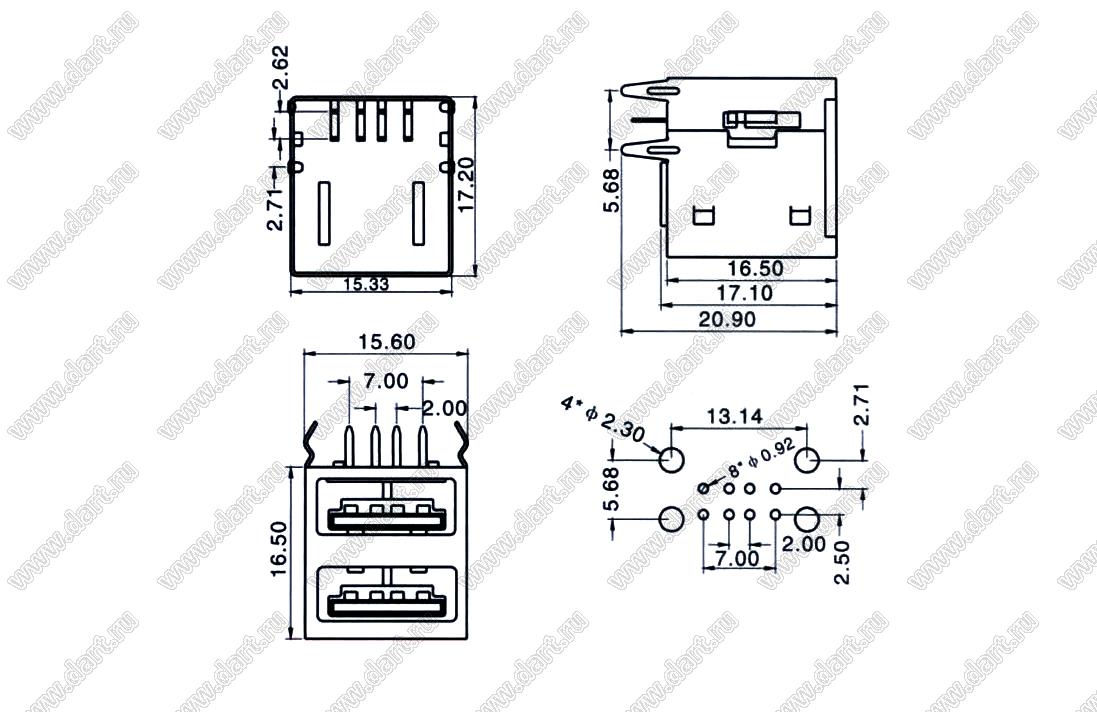 Каталог > Электронные компоненты, радиодетали > Разъёмы (соединители, переходники) > Разъемы USB > Разъемы USB-A > Разъемы USB 2.0 тип A > US01-112 (USBA-2J, USBA-2FR)