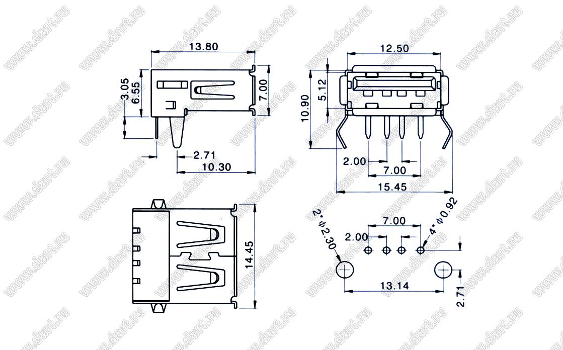 Каталог > Электронные компоненты, радиодетали > Разъёмы (соединители, переходники) > Разъемы USB > Разъемы USB-A > Разъемы USB 2.0 тип A > US01-135