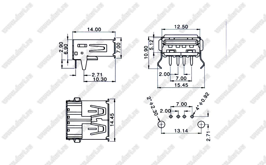Каталог > Электронные компоненты, радиодетали > Разъёмы (соединители, переходники) > Разъемы USB > Разъемы USB-A > Разъемы USB 2.0 тип A > US01-278BR