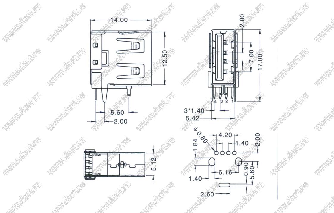 Каталог > Электронные компоненты, радиодетали > Разъёмы (соединители, переходники) > Разъемы USB > Разъемы USB-A > Разъемы USB 2.0 тип A > US01-668