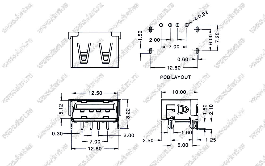 Каталог > Электронные компоненты, радиодетали > Разъёмы (соединители, переходники) > Разъемы USB > Разъемы USB-A > Разъемы USB 2.0 тип A > US01-425