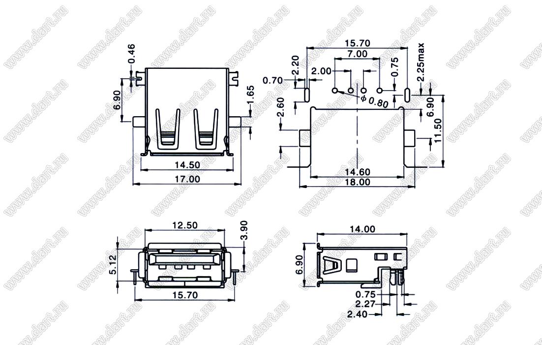 Каталог > Электронные компоненты, радиодетали > Разъёмы (соединители, переходники) > Разъемы USB > Разъемы USB-A > Разъемы USB 2.0 тип A > US01-562