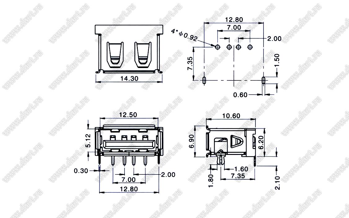 Каталог > Электронные компоненты, радиодетали > Разъёмы (соединители, переходники) > Разъемы USB > Разъемы USB-A > Разъемы USB 2.0 тип A > US10-081