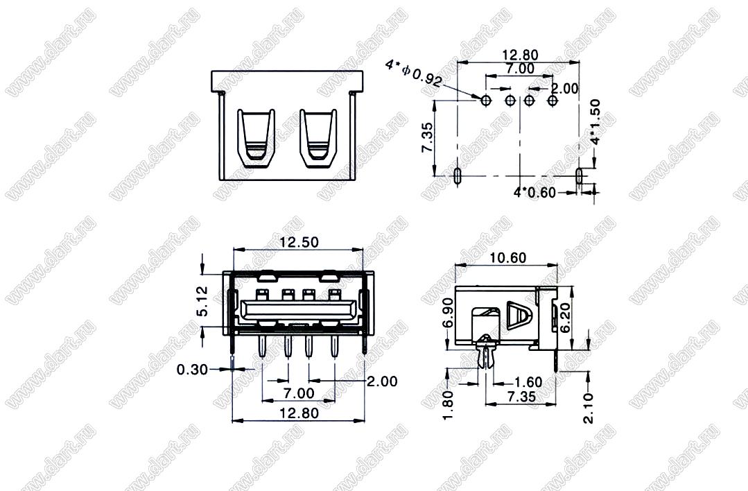 Каталог > Электронные компоненты, радиодетали > Разъёмы (соединители, переходники) > Разъемы USB > Разъемы USB-A > Разъемы USB 2.0 тип A > US10-082