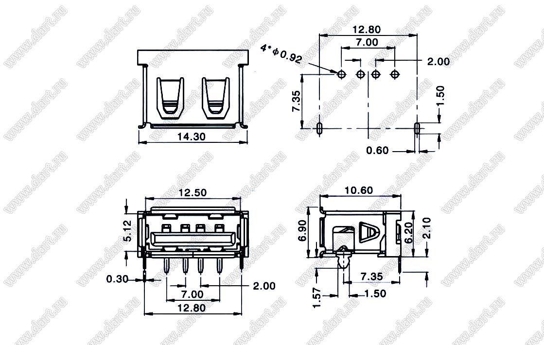 Каталог > Электронные компоненты, радиодетали > Разъёмы (соединители, переходники) > Разъемы USB > Разъемы USB-A > Разъемы USB 2.0 тип A > US10-087