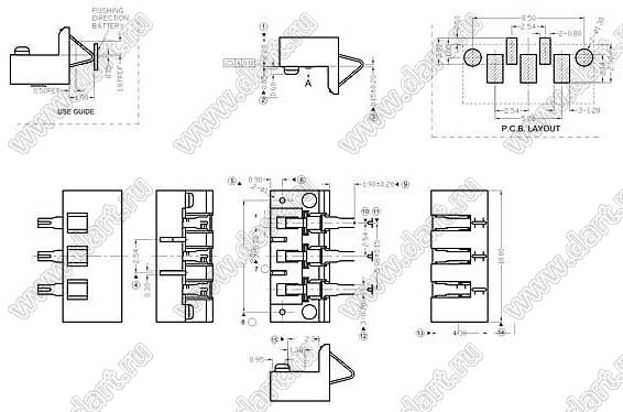 Каталог > Электронные компоненты, радиодетали > Разъёмы (соединители, переходники) > Контакты для батарей мобильных телефонов > BAT-4.3 2.54 pitch 3 pin