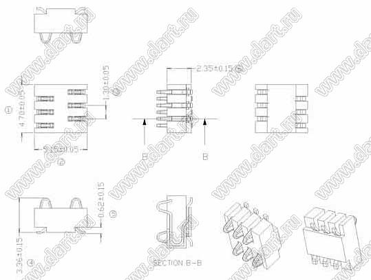 Каталог > Электронные компоненты, радиодетали > Разъёмы (соединители, переходники) > Контакты для батарей мобильных телефонов > BAT-2.35 1.3 pitch 6 pin