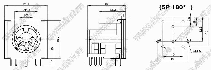 Каталог > Электронные компоненты, радиодетали > Разъёмы (соединители, переходники) > Разъемы DIN круглые > Розетки DIN на плату > DS-5-05