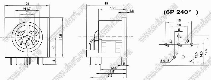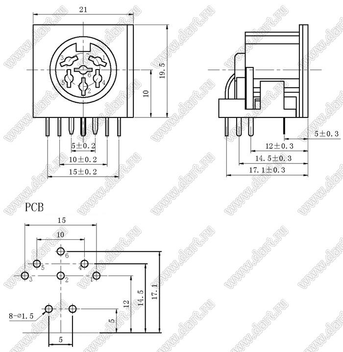 Каталог > Электронные компоненты, радиодетали > Разъёмы (соединители, переходники) > Разъемы DIN круглые > Розетки DIN на плату > DS-6-03A