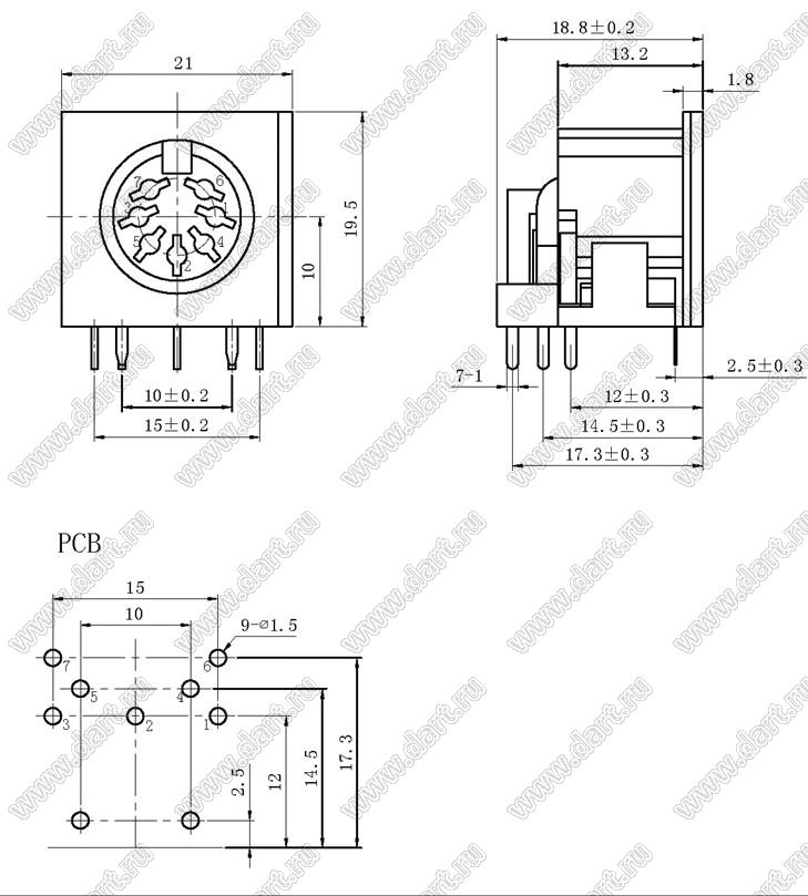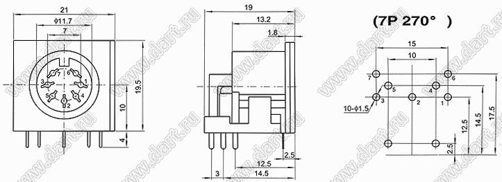 Каталог > Электронные компоненты, радиодетали > Разъёмы (соединители, переходники) > Разъемы DIN круглые > Розетки DIN на плату > DS-7-03