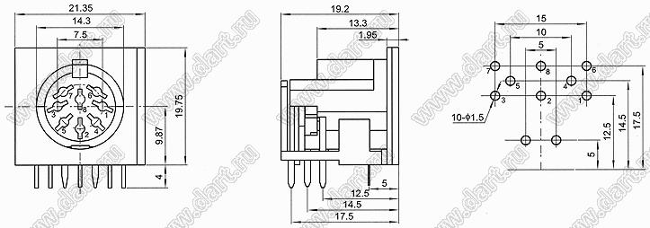 Каталог > Электронные компоненты, радиодетали > Разъёмы (соединители, переходники) > Разъемы DIN круглые > Розетки DIN на плату > DS-8-04A