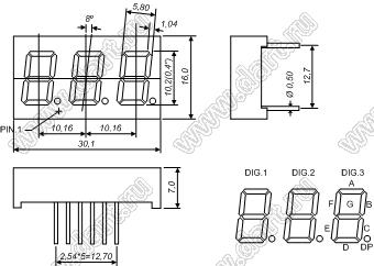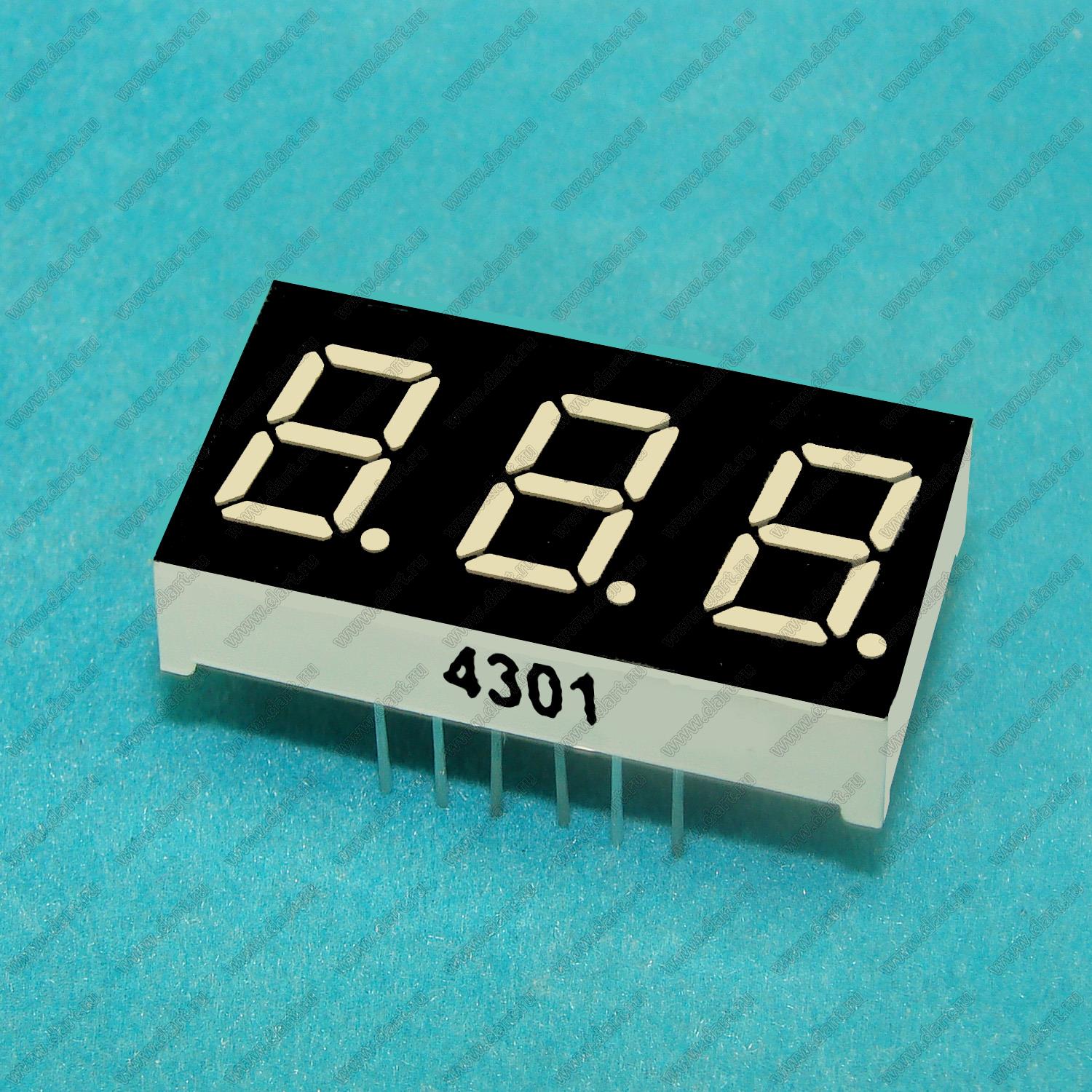 Каталог > Оптоэлектроника и индикация > Индикаторы светодиодные (сегментные дисплеи, матрицы, шкалы, светящиеся поля) > Цифровые и цифро-буквенные cветодиодные сегментные индикаторы (дисплеи) > 3-разрядные 7-сегментные индикаторы > 3-разр. 0.4 дюйм. 7-сегм. 4301 серия > BJ4301EE