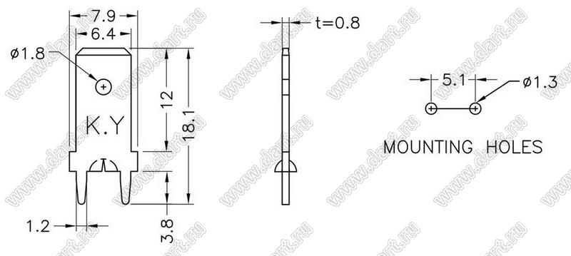 Каталог > Фурнитура для электронных устройств > Терминалы для печатных плат > Терминалы ножевые для пайки в печатную плату > PCRS250-2