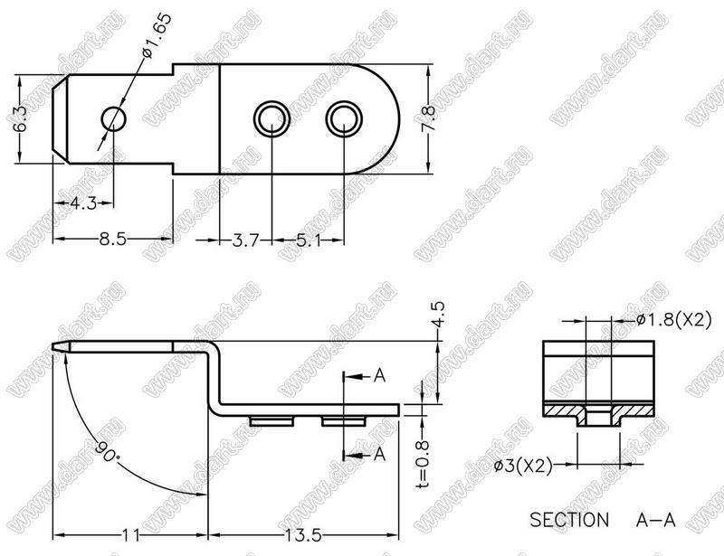 Каталог > Фурнитура для электронных устройств > Терминалы для печатных плат > Терминалы ножевые для пайки в печатную плату > PC1L250-4