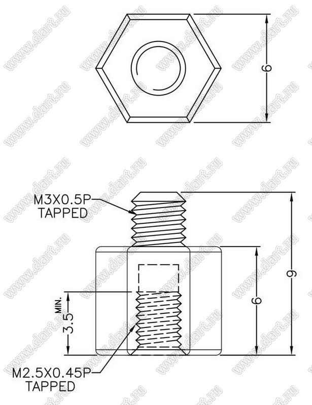 Каталог > Фурнитура для электронных устройств > Крепеж металлический (метизы) и пластиковый > Стойки резьбовые > Стойки резьбовые пластиковые > Шестигранные > TP3 серия > TP3-2.5-6