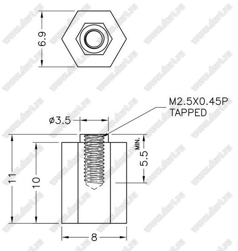Каталог > Фурнитура для электронных устройств > Крепеж металлический (метизы) и пластиковый > Стойки резьбовые > Стойки резьбовые пластиковые > Шестигранные > Прочие шестигранные > HPB2.5-10