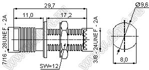 Каталог > Электронные компоненты, радиодетали > Разъёмы (соединители, переходники) > Разъемы высокочастотные коаксиальные > Переходники > MiniUHF адапторы > JC3.640.124 (M/TNC-KKY)