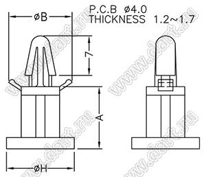 Каталог > Фурнитура для электронных устройств > Фиксаторы плат, стойки межплатные > Фиксаторы под круглое отверстие > Фиксаторы с защелкой в плату > MBS серия > MBS-10