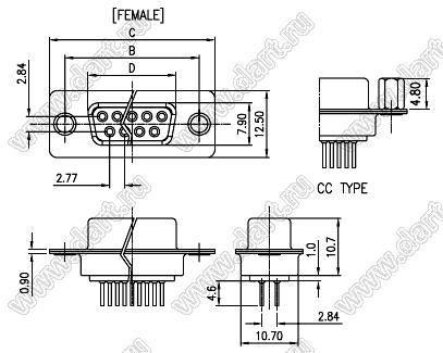 Каталог > Электронные компоненты, радиодетали > Разъёмы (соединители, переходники) > Разъемы D-SUB > DS1034-xxX (5502-xxX, DP-xxX) серия: вилки и розетки D-SUB прямые для пайки в плату > DS1034-25F-CC (5502-25S-CC, DP-25F)