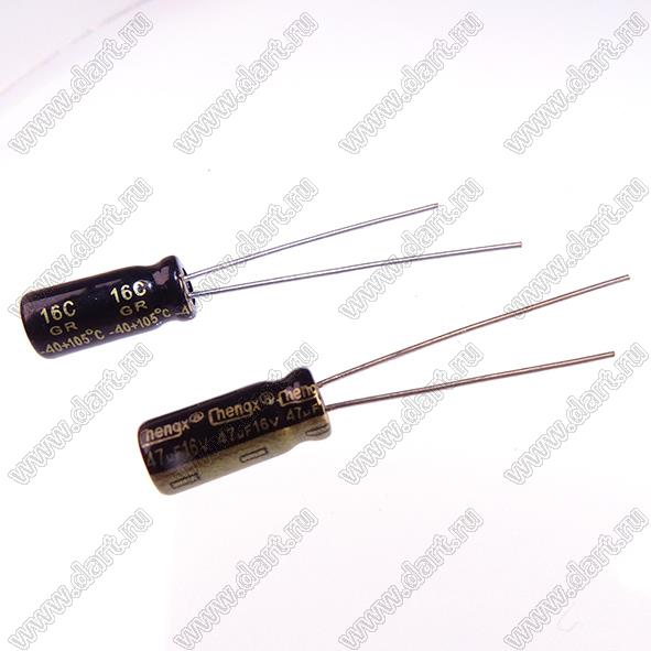 Каталог > Электронные компоненты, радиодетали > Конденсаторы > ECAP - конденсаторы алюминиевые электролитические радиальные > GR/GLR/TN серия > ECAP 47uF/16V 0511 105C GR (GR476M016D11RR0HP0)