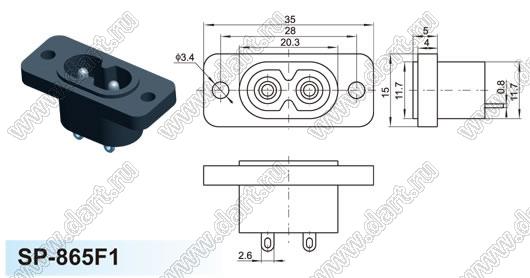 Каталог > Электронные компоненты, радиодетали > Разъёмы (соединители, переходники) > Разъемы AC (разъемы сетевого питания) > Двухполюсные разъемы сетевого питания > IEC 60320 C7/C8 > SP-865F1 (180-D01)