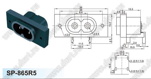 Каталог > Электронные компоненты, радиодетали > Разъёмы (соединители, переходники) > Разъемы AC (разъемы сетевого питания) > Двухполюсные разъемы сетевого питания > IEC 60320 C7/C8 > SP-865R5