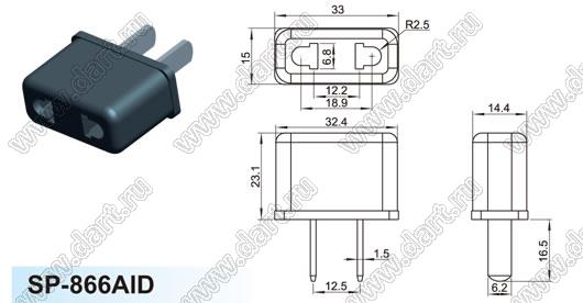 Каталог > Электронные компоненты, радиодетали > Разъёмы (соединители, переходники) > Разъемы AC (разъемы сетевого питания) > Переходники сетевого питания > SP-866AID (9621-1)