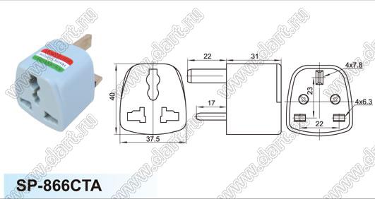 Каталог > Электронные компоненты, радиодетали > Разъёмы (соединители, переходники) > Разъемы AC (разъемы сетевого питания) > Переходники сетевого питания > SP-866CTA (KY-7)