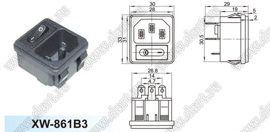 Каталог > Электронные компоненты, радиодетали > Разъёмы (соединители, переходники) > Разъемы AC (разъемы сетевого питания) > Трехполюсные разъемы сетевого питания > IEC 60320 C13/C14 > XW-861B3