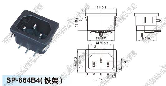 Каталог > Электронные компоненты, радиодетали > Разъёмы (соединители, переходники) > Разъемы AC (разъемы сетевого питания) > Трехполюсные разъемы сетевого питания > IEC 60320 C13/C14 > SP-864B4M