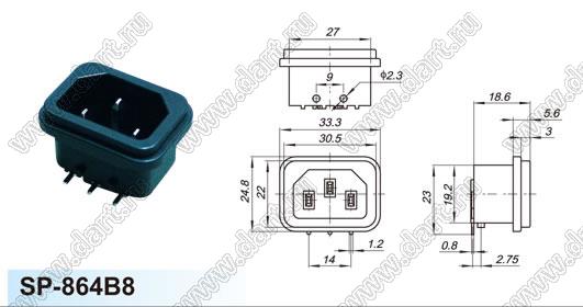 Каталог > Электронные компоненты, радиодетали > Разъёмы (соединители, переходники) > Разъемы AC (разъемы сетевого питания) > Трехполюсные разъемы сетевого питания > IEC 60320 C13/C14 > SP-864B8