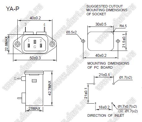 Каталог > Электронные компоненты, радиодетали > Разъёмы (соединители, переходники) > Разъемы AC (разъемы сетевого питания) > Однофазные входные гнезда с фильтром от помех > YA01P