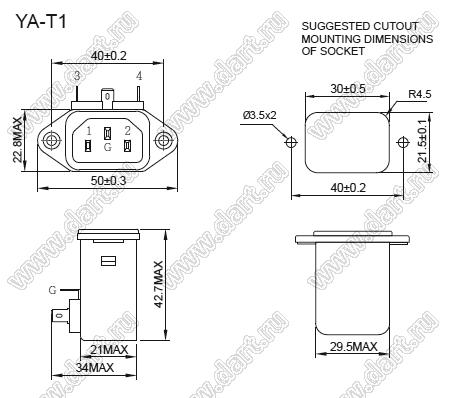 Каталог > Электронные компоненты, радиодетали > Разъёмы (соединители, переходники) > Разъемы AC (разъемы сетевого питания) > Однофазные входные гнезда с фильтром от помех > YA01T1