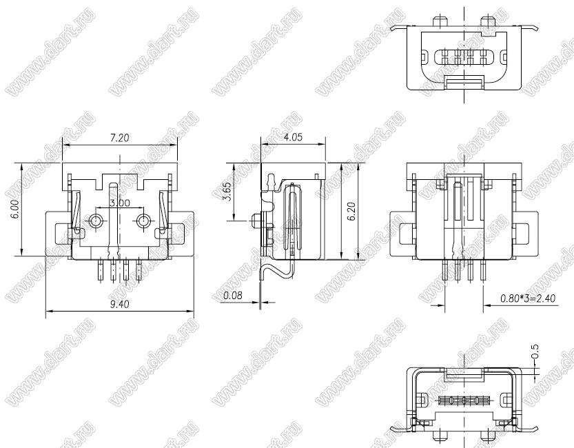 Каталог > Электронные компоненты, радиодетали > Разъёмы (соединители, переходники) > Разъемы USB > Разъемы мини USB > 5075AMR-04-SM