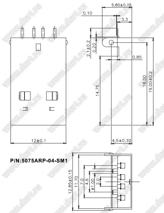 Каталог > Электронные компоненты, радиодетали > Разъёмы (соединители, переходники) > Разъемы USB > Разъемы USB-A > Разъемы USB 2.0 тип A > 5075ARP-04-SM1