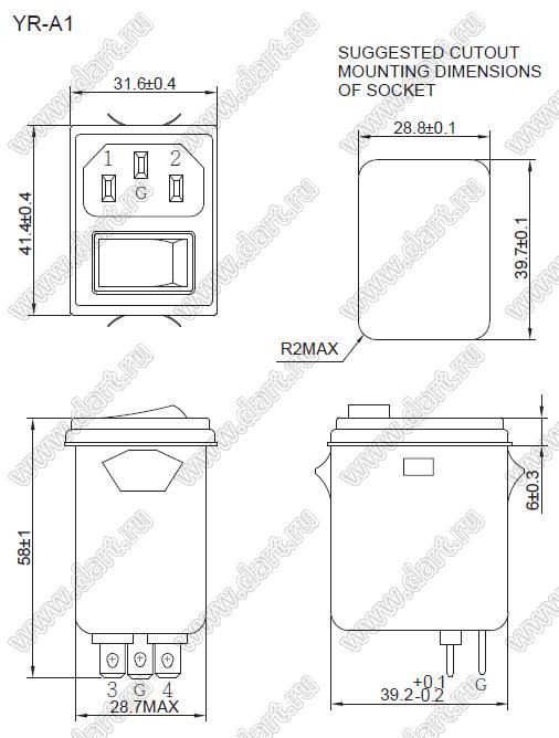 Каталог > Электронные компоненты, радиодетали > Разъёмы (соединители, переходники) > Разъемы AC (разъемы сетевого питания) > Однофазные входные гнезда с фильтром от помех > YR03A1
