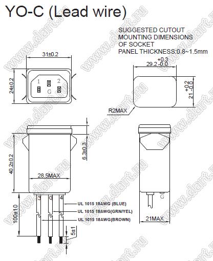 Каталог > Электронные компоненты, радиодетали > Разъёмы (соединители, переходники) > Разъемы AC (разъемы сетевого питания) > Однофазные входные гнезда с фильтром от помех > YO03C