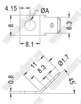 терминал ножевой 6,35 мм (0,250”) угловой 45 град. для печатной платы под винтовое крепление М5; A=5,3мм; 0,8мм; латунь луженая